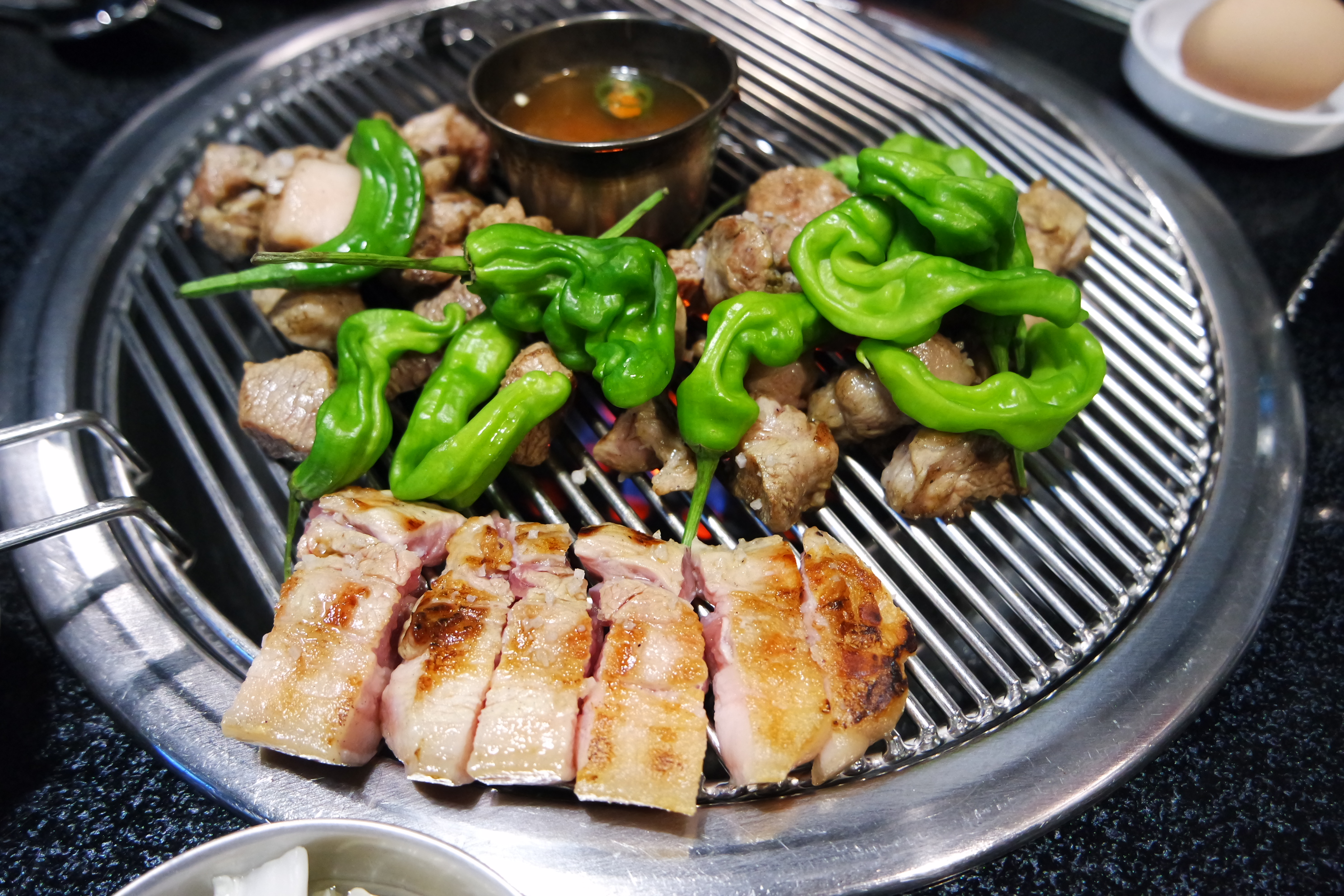 노릇노릇 익어가는 제주오겹살과 목살.