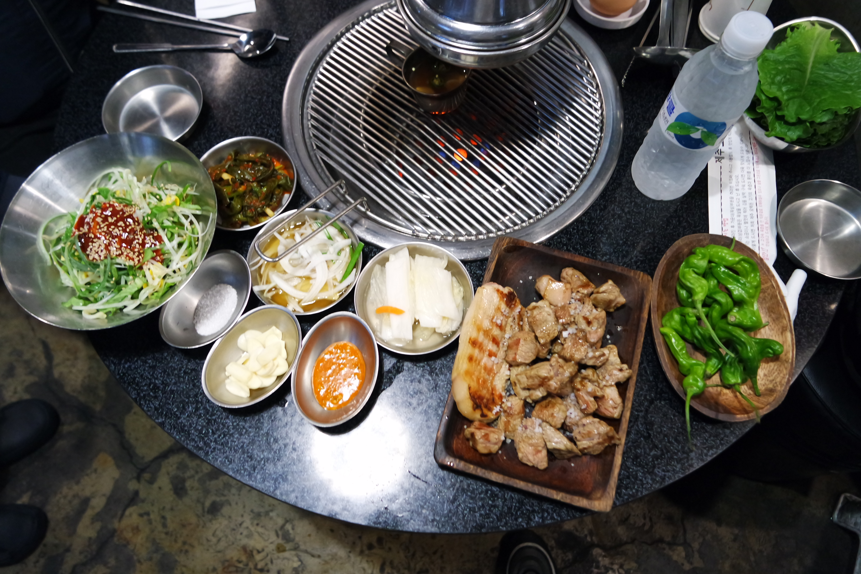 대전 오겹살 맛집 둔산동 오백돈의 상차림.