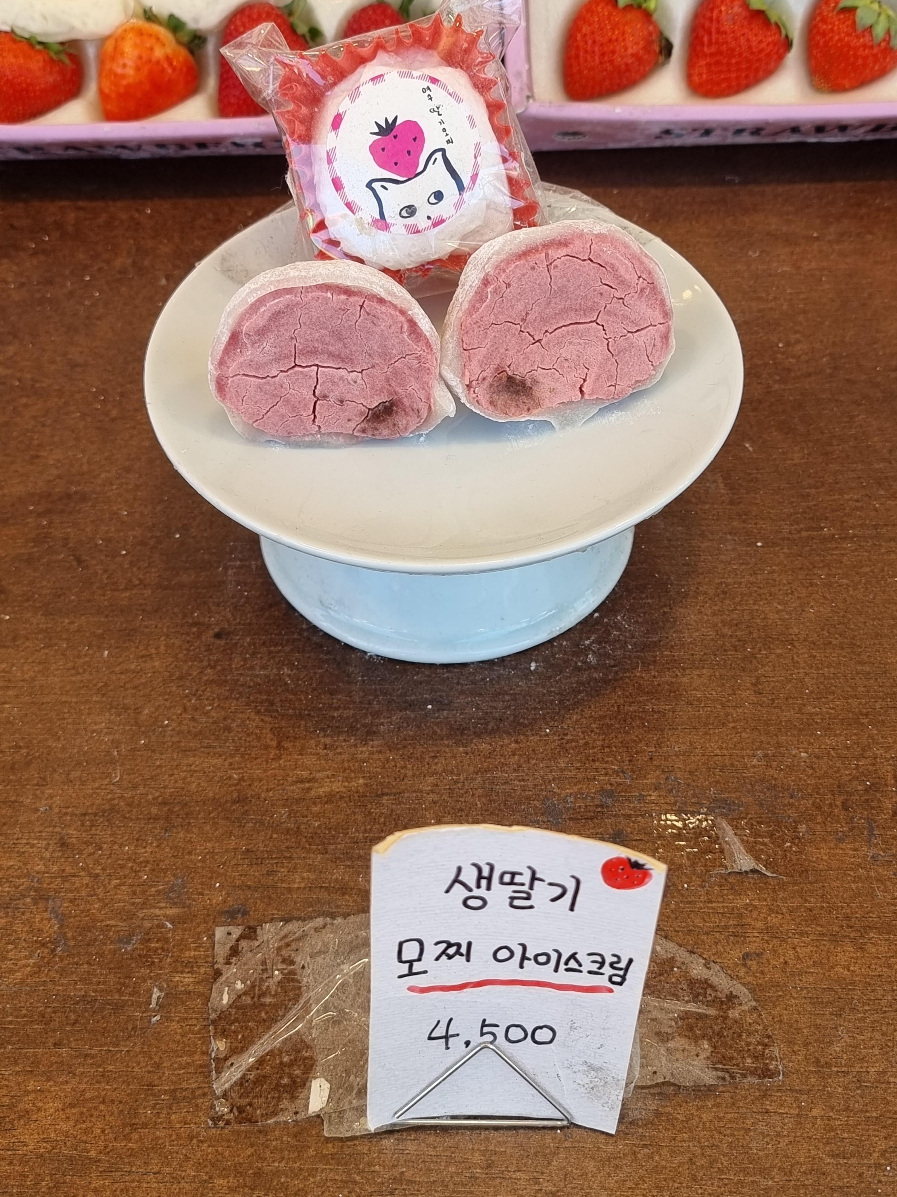 여수딸기모찌는 1년내내 생딸기를 써서 유명한데