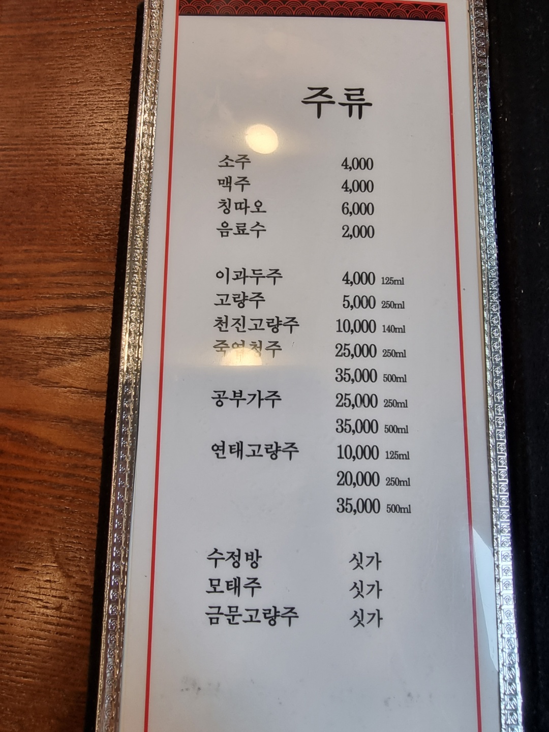 남원 경방루의 메뉴판입니다.