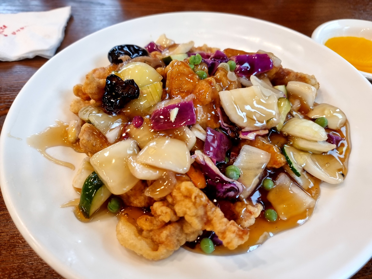 소스도 적당히 달콤하고 튀김과 아주 잘 어우러지는 맛입니다.