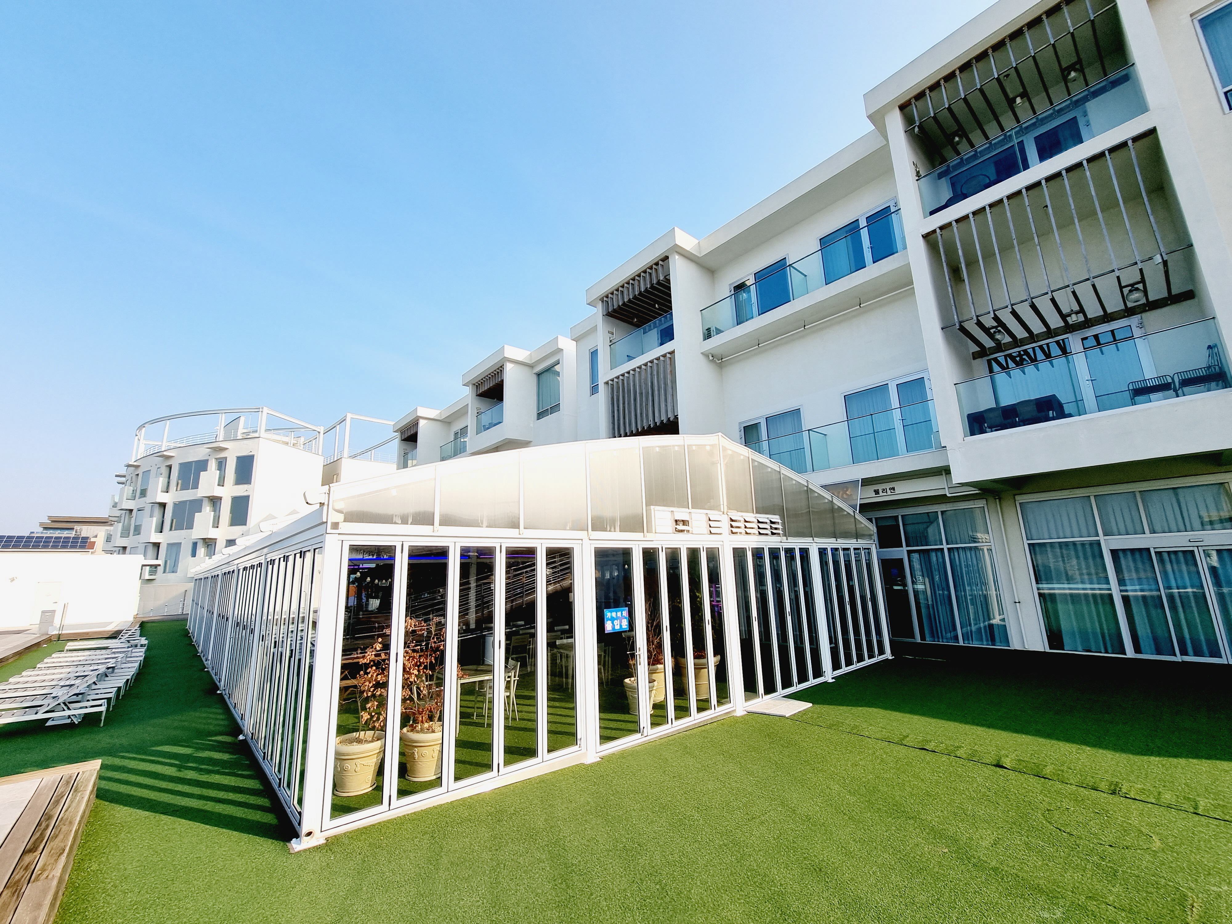오른쪽에는 저녁 노을을 보며 BBQ를 할 수 있는 가바나도 준비되어 있습니다. 그릴 및 부탄가스, 가위, 집게가 제공되고 대여료는 4만원이에요. 봄이나 가을에 이용하면 정말 좋을 것 같았어요.