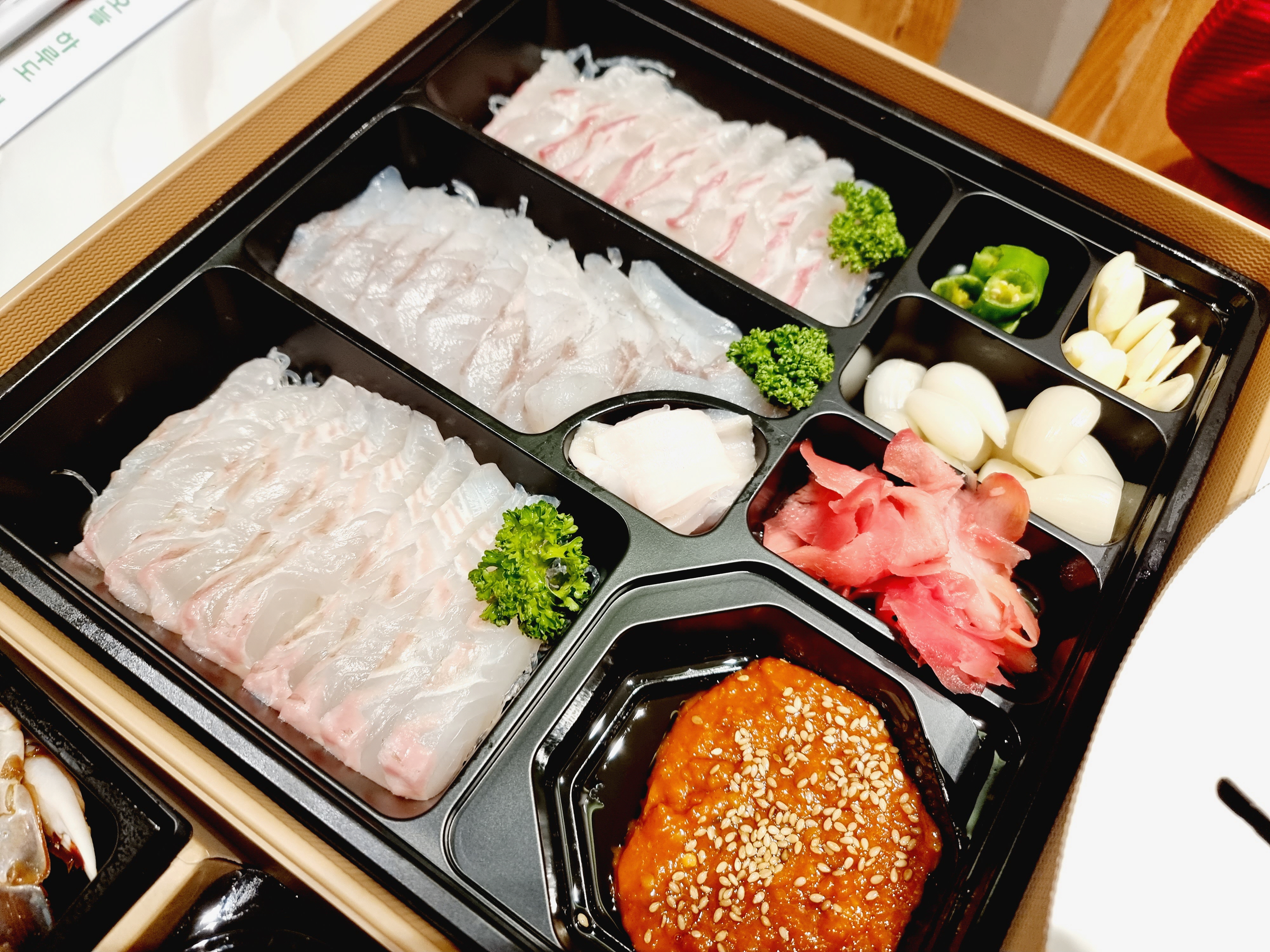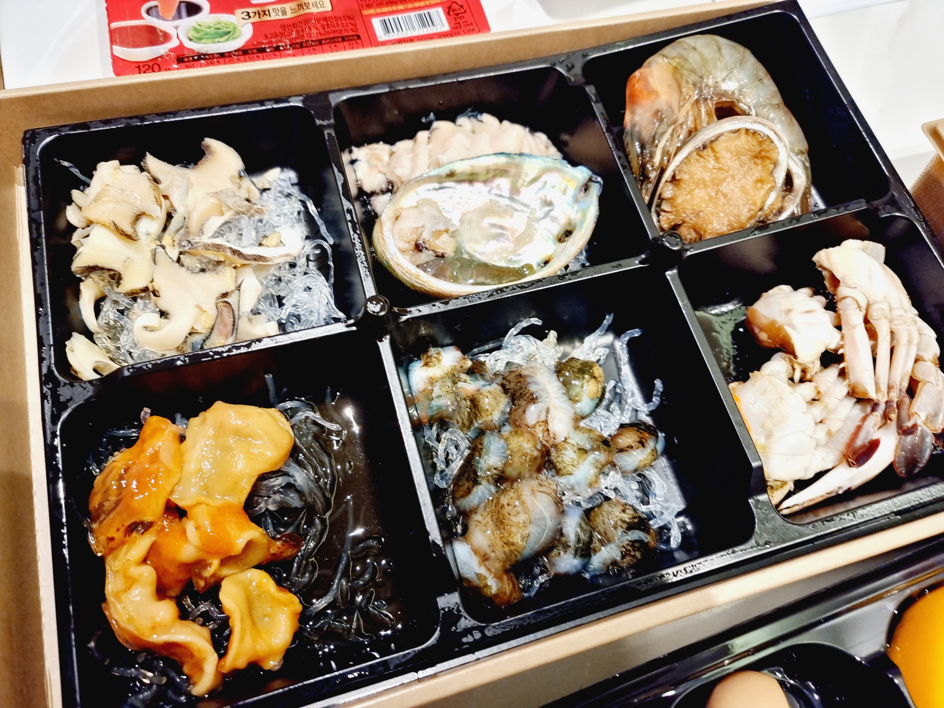 첫째 날에 포장해와서 먹은 모듬회와 해산물세트에요. 작년에도 이곳에서 물회를 맛있게 먹었는데 이번에 포장해온 회도 완전 대박이었습니다. 회가 진짜 신선하고 쫄깃쫄깃 맛있었어요.