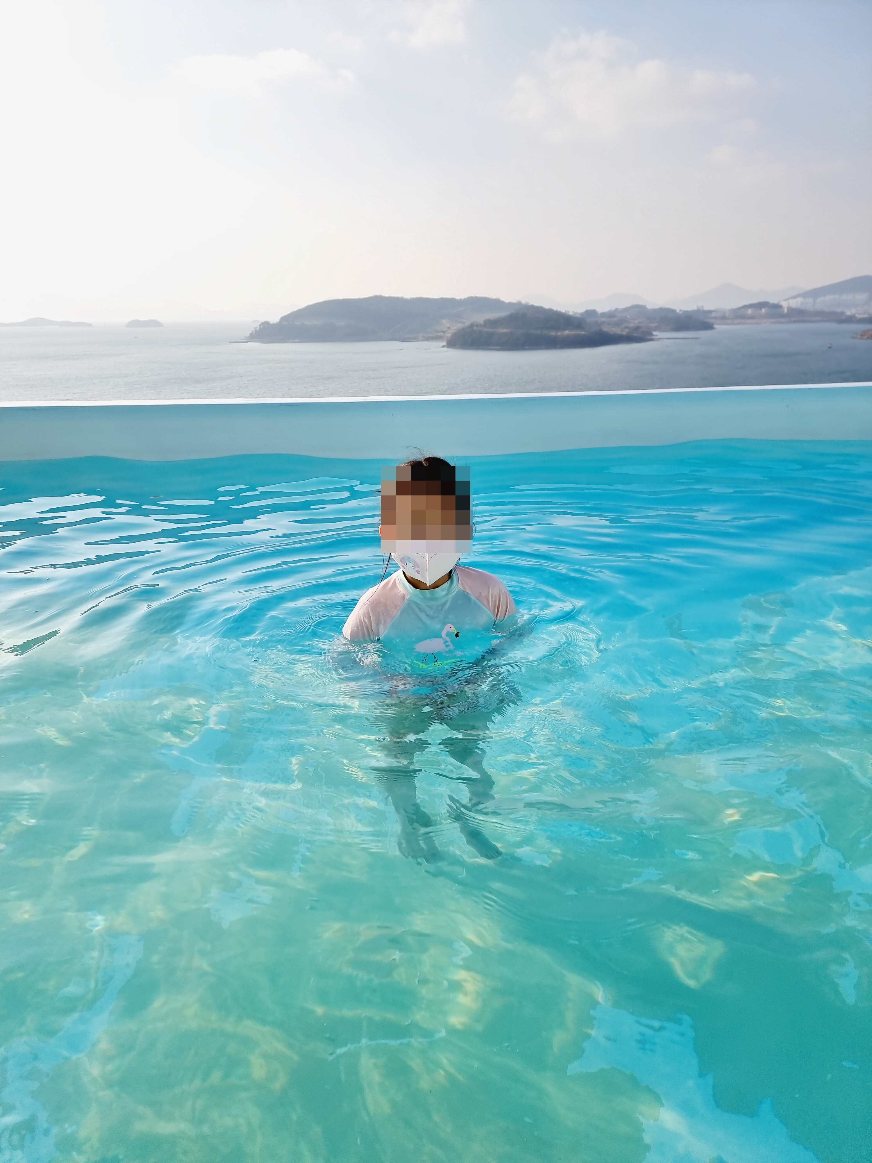 물놀이가 끝났을 때 군대에 다녀온 이후로 최고의 추위를 맛 보았지만 그럼에도 불구하고 여수 바다를 바라보며 즐기는 따뜻한 온수 수영장은 너무 좋은 추억이었습니다.