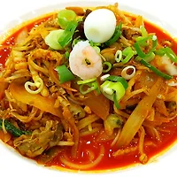 섞박지의 아삭함과 오징어의 쫄깃한 식감이